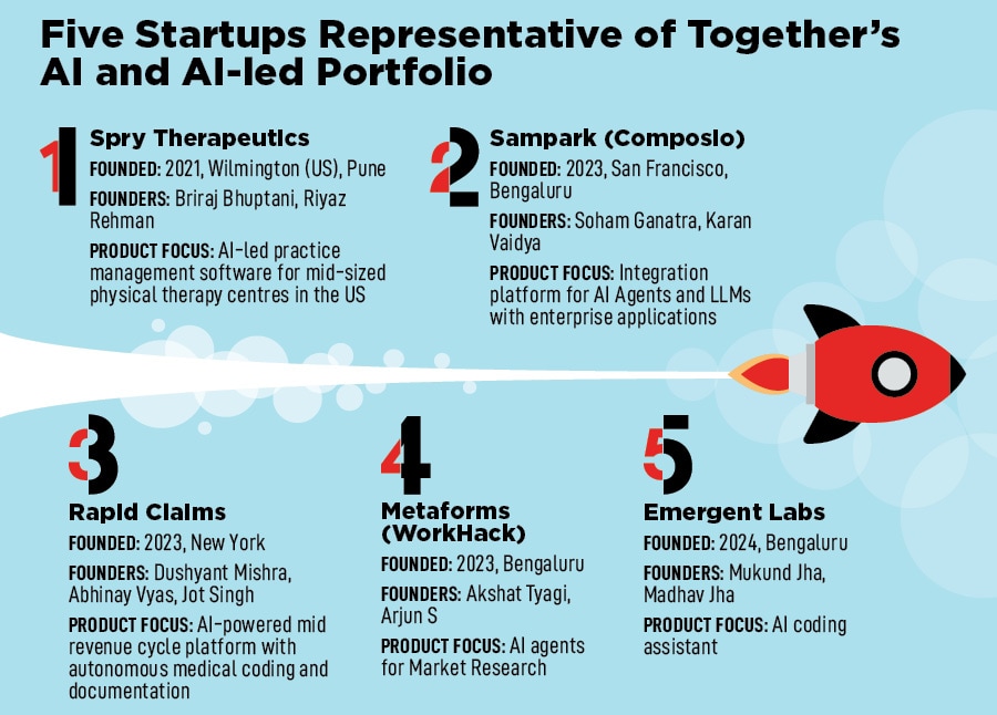 Or, consider software for the US health care market. Garg describes this as the India-to-US healthcare software opportunity. He reckons it is a $10 billion market for Indian startups to help improve efficiency in those segments. And, in addition to Spry, Together has invested in companies such as Rapid Claims, which makes an AI-powered mid-revenue-cycle platform with autonomous medical coding and documentation. And at Confido Health, Chetan Reddy and Vichar Shroff have built both patient-facing and hospital-facing applications.