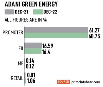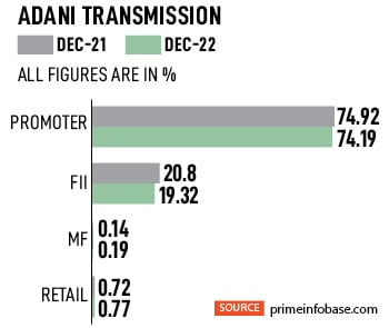 In Adani Power, Adani Transmission, Adani Total and Adani Green Energy, mutual funds have almost nil investments.