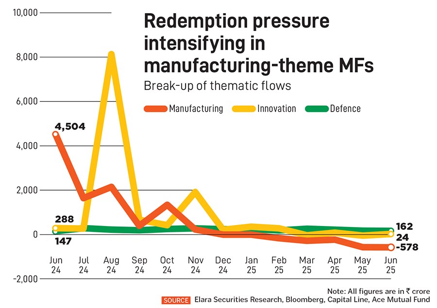 Theme-focussed funds rode on optimism as the government prioritised manufacturing, defence, and innovation through policy incentives and budgetary support. But investor appetite for mutual funds with these themes now seems to be waning, resulting in low inflows or redemption pressure.