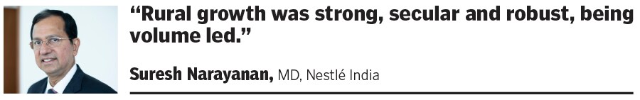 “Rural growth was also strong, secular and robust, being volume led," Narayanan said in a statement. The rising demand for small packs of coffee and noodles, and a move to expand its distribution network have lifted rural sales over the last few quarters.
