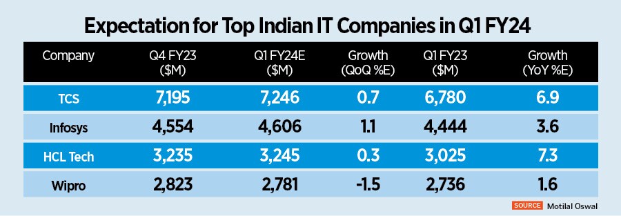 TCS and HCL Tech will kick off the earnings results season today for the sector's fiscal first quarter