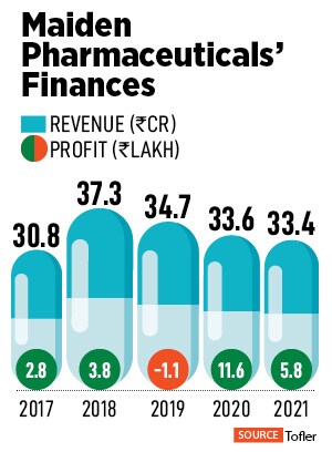 The company’s manufacturing units in Panipat and Kundli in Haryana are capable of manufacturing 600 million capsules, 18 million injections, 0.3 million tubes of ointments, 2.2 million units of syrups, and 1,200 million tablets annually. The company manufactures everything from lifesaving drugs to antibiotics. “Our sincere efforts of practicing and providing high-quality products are recognised by national and international certifying agencies and have honoured us with ISO 9001:2000 and WHO GMP certificate," Maiden claims on its website. The company has three directors, Vinod Kumar, Naresh Kumar Goyal, and Vivek Goyal. As of March 2021, it had revenues of Rs 38 crore, while its net profits stood at Rs 5 lakh.
