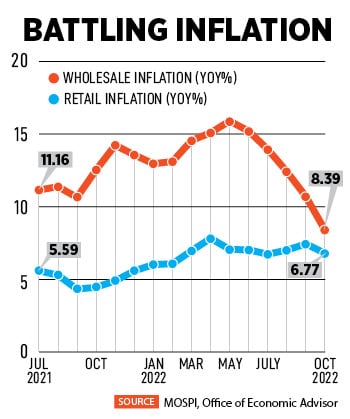 Inflation is far beyond the MPC’s upper threshold of 6 percent. It is seen to be on a downward trajectory, though. Crude oil, an important constituent of the price basket, has reduced from about $120-130/bbl. in March to around $82-85/bbl. in November, marginally lower since the previous MPC meet in September.