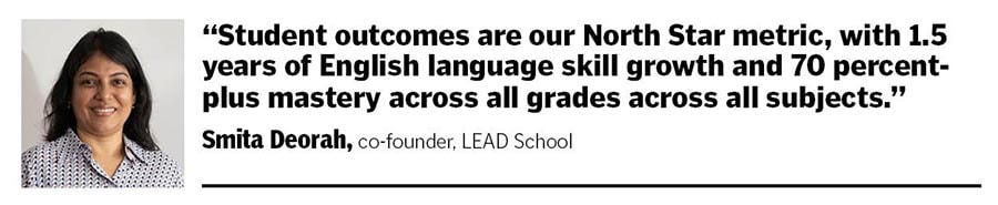 At the school level, LEAD is bringing about habit changes, including going into minute details of the daily timetable and which students will go where. And data-driven decisions are integral to everything that teachers do. For example, in determining remedial classroom action with a student who might have fallen behind. Overall, “if you walk into a LEAD partner school, you’ll see it operating very differently from any small-town school that we are used to," she says.