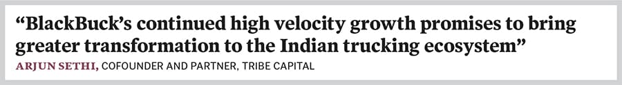 For Arjun Sethi, co-founder and partner at Tribe Capital, what has clicked for the trucking unicorn is its ability to transform the industry. India"s supply chain, he stresses, and the logistics industry is moving from paper and pencil to digital. BlackBuck’s ability to measure output and productivity growth has streamlined logistical challenges for the industry over a short period of time. “Its continued high-velocity growth promises to bring even greater transformation to the Indian trucking ecosystem," he adds.