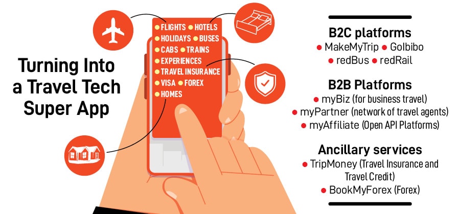 Through tech-led innovation and strategic acquisitions, MakeMyTrip has built an ecosystem and the vision for a super app, fuelled by data-driven AI