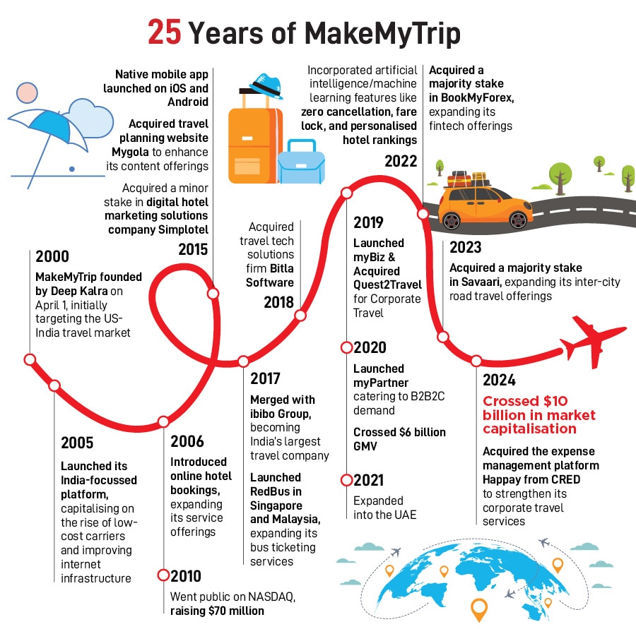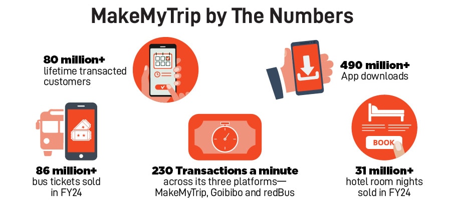 Fast forward to April 2025. MMT has served over 80 million travellers, transforming the daunting maze of travel agents, unending phone calls and uncertainties that was India’s travel industry into a simpler, seamless and accessible process. In FY24, the company (listed on the Nasdaq) clocked in its highest gross bookings of $7,954 million in the first nine months of FY25, it touched $7,250 million. From flights to hotels, visas to forex, MMT’s journey has been more than just about growth it has reshaped how Indians travel, through strategic acquisitions and tech-led reinventions.