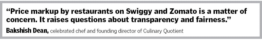 Now comes the ‘invisible’ side of the coin, which is paying through the nose for using the coin. “Such practice misleads customers by not reflecting the true cost of the food item," reckons Bakshish Dean, a celebrated chef and founding director of Culinary Quotient, a food consultancy firm. It (such practice) may lead to dissatisfaction when customers realise that they paid more for the same item through the platform compared to dining in or ordering directly from the restaurant. “This can potentially erode consumer trust in the foodtech platforms and tarnish the overall experience," underlines Dean.