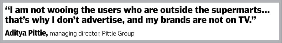 Interestingly, Pittie is not the first to build brands out of the crucible of supermarkets and modern trade. “The first to do so was Ajay Gupta who rolled out Ching’s Secret way back in 1995," says Mall. Gupta didn’t have the financial clout to take the general-trade (GT) route. So, he bypassed kiranas, entered modern trade and made an impact. “He knew that success across supermarkets would make Ching’s a national brand," says Mall, adding that most of the consumption categories in India are unbranded. So, there is a scope to churn out more brands. The biggest advantage for Pittie, he reckons, lies in going deep in the value space. “He is not building premium brands. As long as he plays the value game well, he will grow at a fast clip," says Mall.