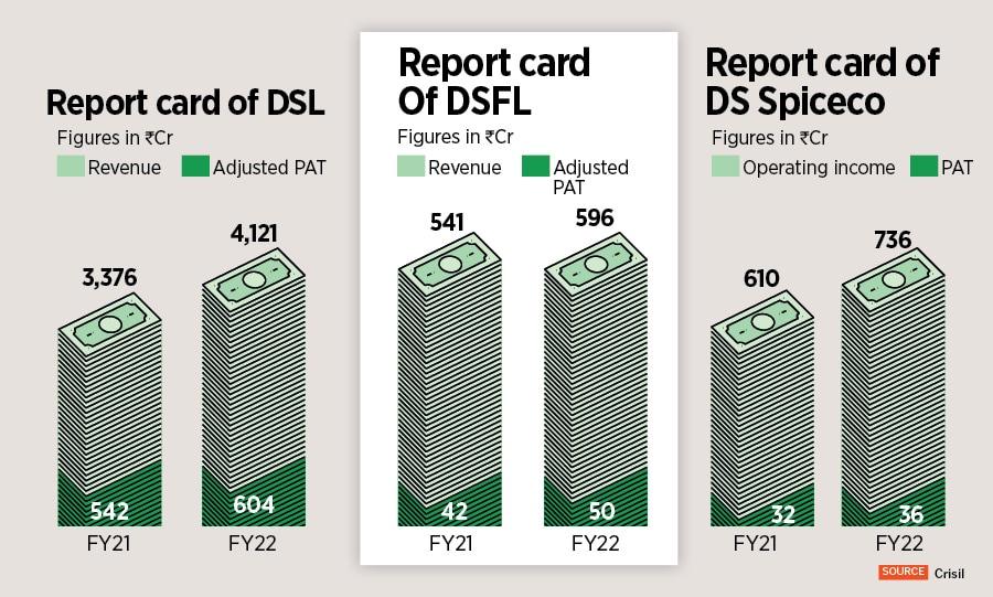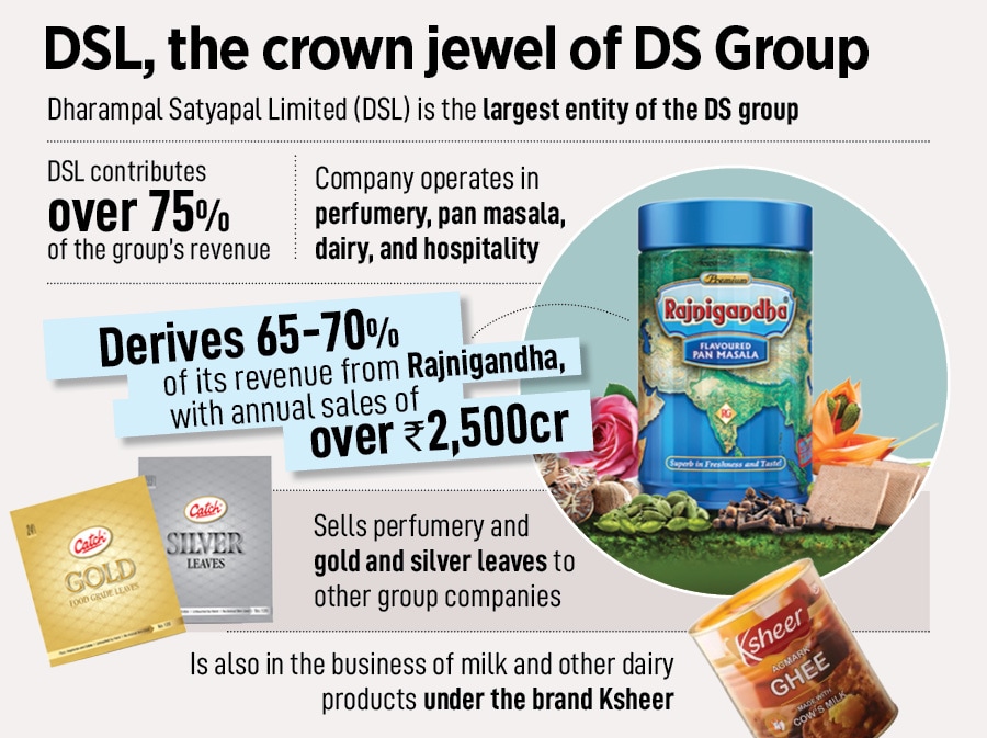 Dharampal Satyapal Limited (DSL) happens to be the biggest entity within the DS Group. With operations in perfumery, pan masala, dairy and hospitality, DSL posted a revenue of Rs4,121 crore and an adjusted PAT (profit after tax) of Rs604 in FY22. While DSL contributes over 75 percent to the group’s revenue, it gets over 70 percent of its sales from pan masala brand Rajnigandha, according to a recent rating report by Crisil.