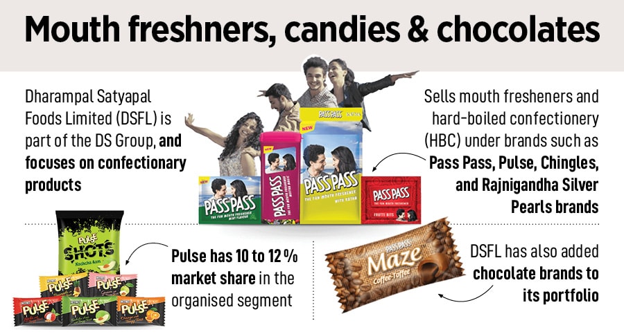 The second big component of the DS Group is DS Spiceco. With operations in straight spices, blended spices and table sprinklers under the brands Catch, Kewal and Maharaja Choice, Spiceco has a dominant market position across a bunch of northern states such as Uttarakhand, Punjab and Himachal Pradesh. The revenue of Spiceco has seen a decent growth over the last two years—from Rs610 crore in FY21 to Rs736 crore in FY22. The third company in the DS Group pecking order is Dharampal Satyapal Foods Limited (DSFL), which focuses on confectionary products. The company sells mouth fresheners and HBC under brands such as Pass Pass, Pulse, Chingles, and Rajnigandha Silver Pearls brands.