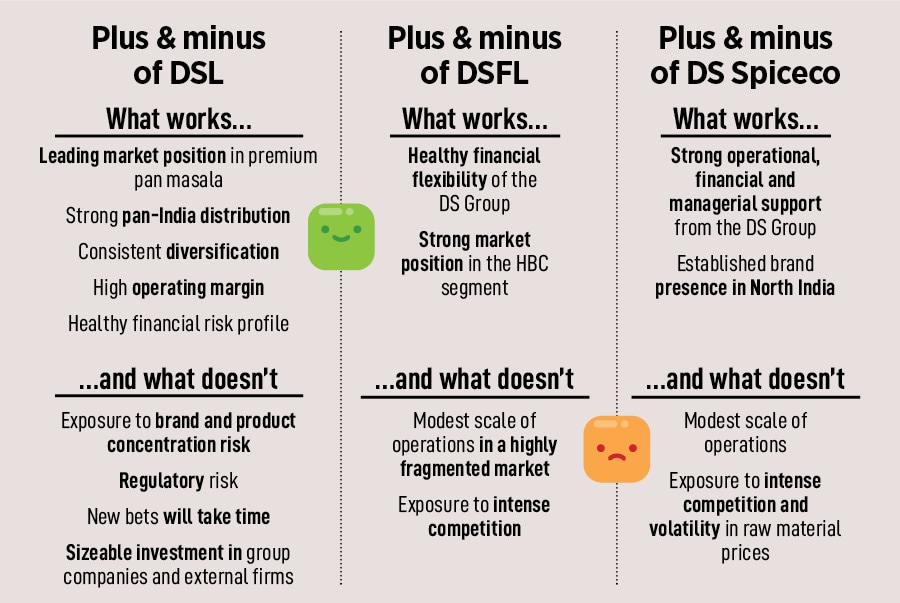 Industry analysts and FMCG experts explain why DS Group’s diversification drive into non-tobacco and non-pan masala FMCG is not likely to make a serious dent. “The fault lies in the structure," says Rajan Gahlot, assistant professor at the University of Delhi. As long as Rajnigandha aggressively continues to drive the growth and profits, there would be less incentive to make other verticals grow at a furious pace. Take, for instance, Catch. The brand was rolled out in 1987, and even after three-and-a-half decades, it is not among the top five in its category. “It has nothing to do with the quality, but everything to do with the way it has been handled," he reckons.