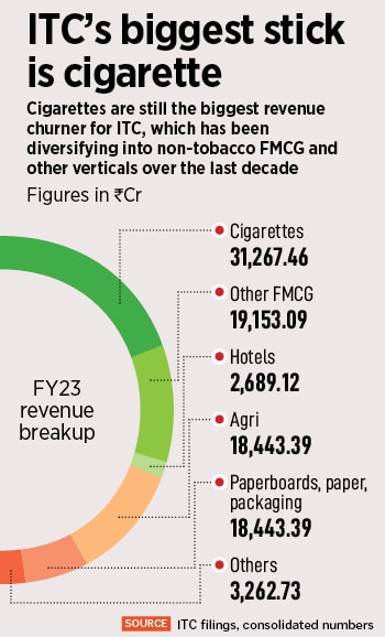 The biggest issue, though, affecting the transformation is something that has made the group: Pan masala and tobacco. The lucrative nature of the business, the hesitancy on the part of the government to clamp down on tobacco and liquor products due to their high contribution to the tax kitty, and the inability to play the new game—read non-FMCG—with a high sense of urgency might haunt the legacy tobacco and liquor players, says an FMCG analyst with one of the top brokerage houses. You can definitely be an FMCG and cigarette or liquor conglomerate, but then you will be biased towards the categories which will give you the most and easy money, he says, requesting not to be named.