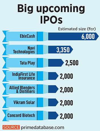 However, it is not all gloom and doom in the primary markets. A significant number of companies are waiting to be listed via IPOs. Currently, there are 42 companies that have received approvals from the Securities and Exchange Board of India (Sebi) to go public. Some of the big issues lined up are EbixCash, with an estimated issue size of Rs 6,000 crore, Tata Play (Rs 2,500 crore) and Navi Technologies (Rs 3,350 crore).