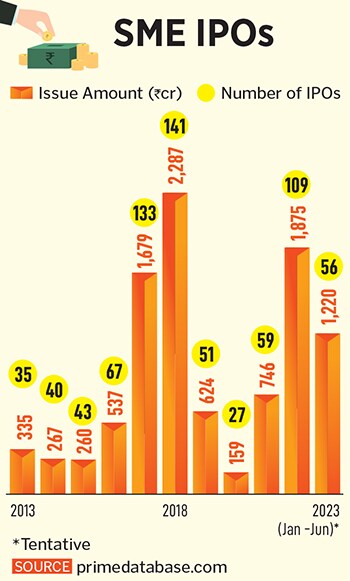 This compares to a total 109 SME IPOs in the full year of 2022, which raised Rs 1,874.84 crore. In terms of fund raising, 2018 was the best year for the SME IPO segment, which had 141 listings to raise Rs 2,286.93 crore, the best in at least 10 years.