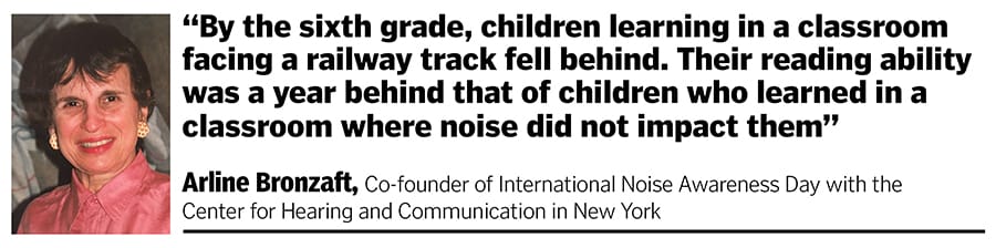 The commissioner’s discovery of ordinary people’s distress with noise pollution is not a surprise. Forty-seven years ago, in 1975, New York-based environmental psychologist Arline Bronzaft studied the effects of noise on learning in children. In a Zoom call from New York, she told me: “My study clearly showed that, by the sixth grade, children learning in a classroom facing a railway track fell behind. Their reading ability was fully a year behind the reading abilities of children who learned in a classroom where noise did not impact them."