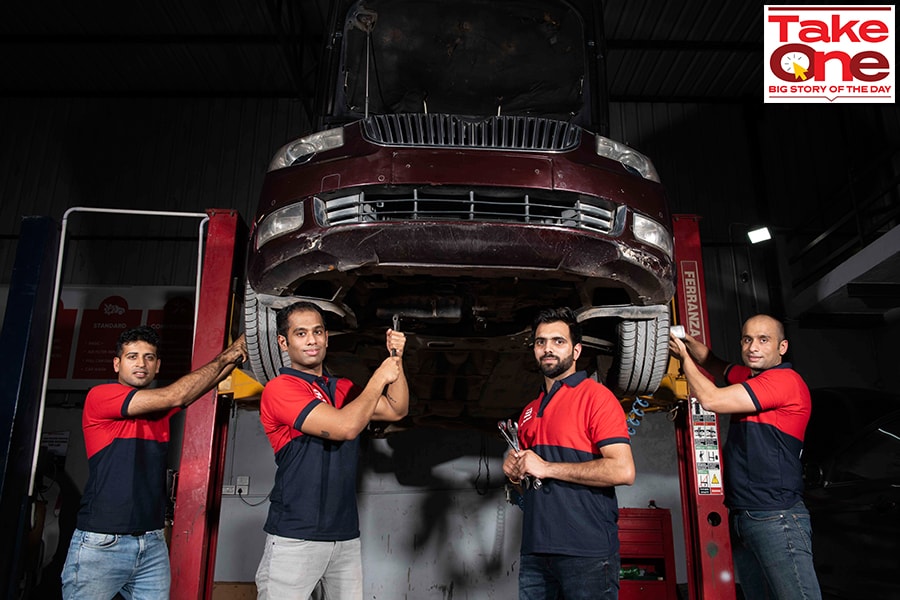 One fine day in March 2016, though, Karwa was forced to take a hard look at ‘why’. The maths didn’t make sense: The money spent on repairs was more than the cost of buying the used car. Bhasin too ended up on the wrong side of the calculation. The duo reasoned that the car service and repair segment was ripe for disruption. There were no branded players, the neighbourhood workshops were inefficient, and the quality of spare parts was suspect. The opportunity to make a dent in such an unorganised market was big. The question in front of Karwa and Bhasin was: Can they do it? “Why not?" said the duo, who teamed up with two more friends—Rishabh Karwa and Nitin Rana—to set up a workshop.