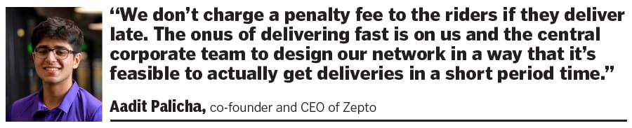 Palicha of Zepto affirms that the company does not put any pressure on the riders to deliver the order in 10 minutes and does not charge any penalties if the order is not delivered in the promised time. The actual time and speed of the rider is displayed in real time only for the customers. “Faster deliveries are about short distances and not fast speed. Apart from this, from providing a good shelter while the rider waits to get the next order and access to clean washrooms to basic insurance, we provide all the required benefits to our delivery partners," he says.
