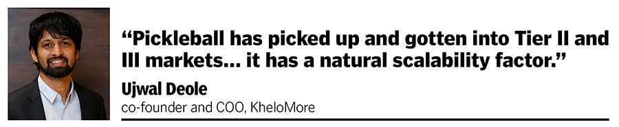 Sportstech platform KheloMore observed a similar pattern over the last year. Its co-founder and COO Ujwal Deole reveals that when they launched the app for making sports venues accessible, the most-popular sports then were box cricket, football and badminton. Then came tennis and squash. “Since the last year or so, two new racket sports started emerging: Paddle and pickleball. Paddle is still a Tier I market game. But pickleball has picked up and gotten into Tier II and III markets. It remains to be seen how paddle picks up, but pickleball has a natural scalability factor," he explains.