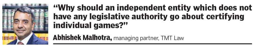 “This can be dangerous. Why should an independent entity which does not have any legislative authority go about certifying individual games? A better way to go about it would be self-certification by the company stating that its game is one of skill. If someone has a problem, and it comes up for dispute or grievance, then the SRO can come in. This will protect the company’s IP and ensure that confidential data is not shared with competitors," says Malhotra.