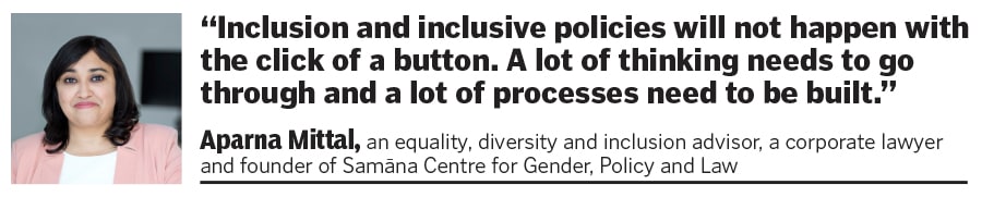 Having extensive hands-on experience as the founder of SamÄna Centre for Gender, Policy and Law, a consultancy focused on Diversity, Equity & Inclusion (DEI), Environmental, Social & Governance (ESG) and Prevention of Sexual Harassment (PoSH), Mittal believes that everything, from a small local neighbourhood store to a big conglomerate or MNC, is part of corporate India, and with this imagination of a real corporate India, we haven"t even gone beyond 5-10 percent with regards to LGBTQ+ inclusion work and policies. “Work is definitely happening at a good pace now, but it is happening in limited pockets," she adds.