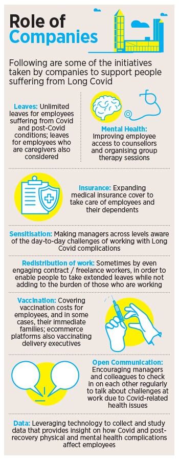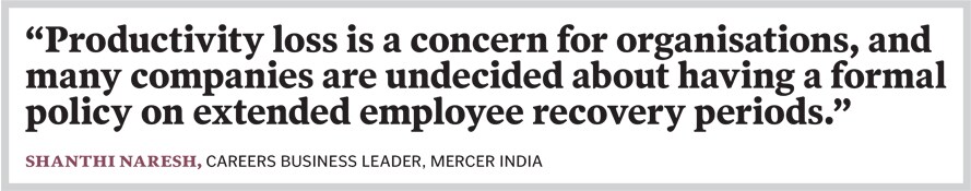 In corporate circles, while Long Covid is definitely a conversation—from discussing health benefits like insurance to impact on overall work practices—it is not likely to be very detailed at this point, says Shanthi Naresh, careers business leader, Mercer India. “Productivity loss is a concern for organisations, and many companies are undecided about having a formal policy on extended employee recovery periods," she says.