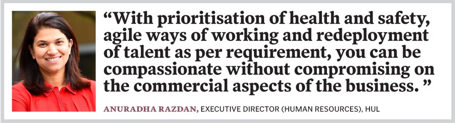 “Compassion does not need to come at the cost of business," she says. “If we have prioritisation of health and safety, agile ways of working and redeployment of talent as per requirement, you can be compassionate without compromising on the commercial aspects of the business."