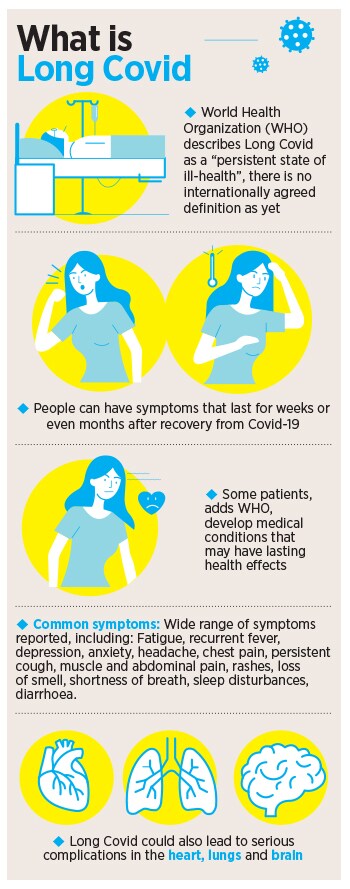 The World Health Organization (WHO), in a March update on the clinical long-term effects of Covid-19, describes Long Covid as a “persistent state of ill-health". It explains that while most people with Covid-19 recover and return to normal health, “some people can have symptoms that last for weeks or even months after recovery from acute illness… some patients develop medical complications that may have lasting health effects".