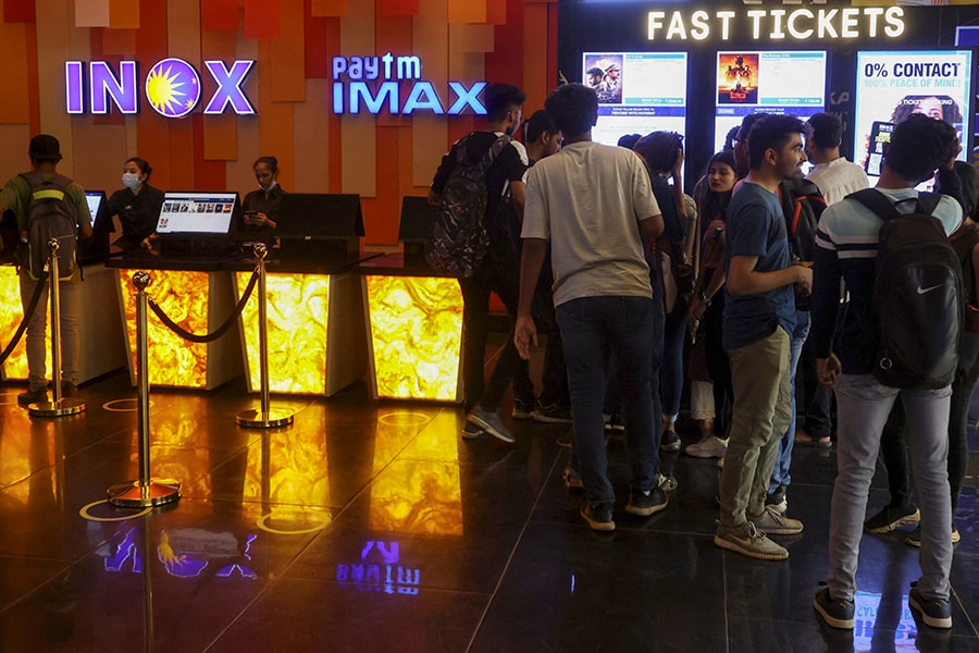 People wait to buy tickets at an INOX movie theatre in Mumbai, India, March 29, 2022.Image: Francis Mascarenhas / Reuters