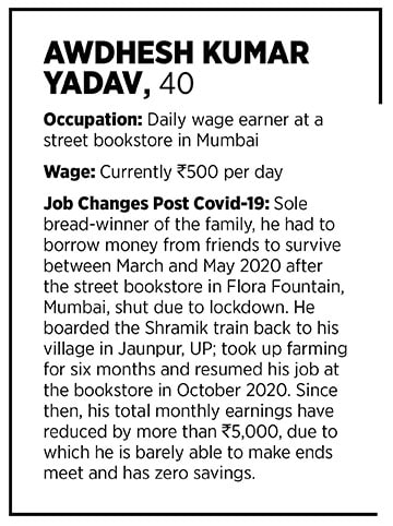 He had been working for a street bookstore owner at Flora Fountain in Mumbai, starting with a daily wage of Rs60 in 1999. He had left his village in Jaunpur, Uttar Pradesh, where his family practiced farming on one acre of land, and migrated to Mumbai to climb up the income ladder. Over two decades later, by early 2020, Yadav had started making close to Rs700 per day on the job and his monthly take-home income had increased to more than Rs20,000. The money, he says, had been sufficient to make ends meet every month.