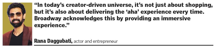 Biyani and team are not looking to replace the spend on platforms like Amazon and Flipkart, and telling their customers to come to Broadway. “We feel that a physical retail space is still relevant to the life of consumers. But I think what consumers, especially the younger cohort, wants to do in a physical space is not just the act of shopping alone," says Biyani. The objective for Broadway, as per Biyani, is to create an experiential way for brand engagement with consumers and content creators. “The starting point is not shopping at all. Broadway is not here to say that you should do the transaction on Broadway only. Tomorrow, if one wants to go and do it online, we are happy with it. The core idea is how do you get the brand engagement going for consumers and the physical environment." Getting the founding team together was an easy task, according to Biyani. When he went to the partners with the idea, they were all sold to the concept in one go. "The fact that we can leave a mark, and a sense of community with the brand is something I deeply resonate with. I am always inclined towards investing in a good, unique story that can be scaled and help build a legacy—be it a film or a product. So, when Vivek approached me with the unique concept of ‘Broadway’, I was on board immediately," says actor and entrepreneur Rana Daggubati.