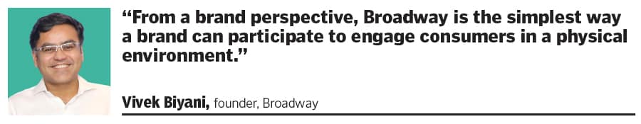 Biyani came up with the concept of Broadway with the philosophy that every time the core form of communication changes, commerce around it changes. In today"s world, social media has taken centre stage, shifting brand building from traditional large-scale television advertising to platforms like Instagram. Now it"s about creating content and engaging in personalised communication to demonstrate a brand"s relevance to consumers. “We thought that physical retail in itself needs a reinvention."
