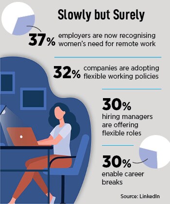 “At a time when the boundaries between personal and professional lives are continuing to blur, flexible working can prove to be of great respite for working women often burdened with juggling personal and professional responsibilities. For instance, our research reveals that due to poor flexi-working policies, India’s working women are 2x more likely to have to choose between childcare and career, when compared to men," Ruchee Anand, senior director—talent and learning solutions, LinkedIn, tells Forbes India. Flexible working is the biggest priority for both men and women today, she adds, but “the repercussions for not getting flexibility at work are far greater for women in India today".