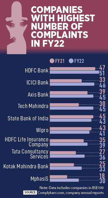 Data showed that these companies registered 759 cases in FY22 compared to 595 reported in FY21. The number of cases has not surpassed pre-Covid levels. In FY20, these companies reported an aggregate of 999 sexual harassment cases amid the #MeToo movement gaining momentum, leading to employee activism in India. Typically, in such waves, employees feel empowered and confident to break their silence when it comes to reporting misconduct issues at the workplace.