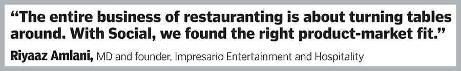 Amlani, though, bets on the sweet spot that Social has hit in terms of the average per cover (APC), a key metric to assess restaurant performance. The chain’s APC is around Rs 900, far north of the Rs 300 for cafes like Mocha, but way below Rs 2,000 for the fine-dining restaurants in Impresario’s portfolio. With the sizes of Social outlets ranging from 1,500 sq ft (in Mumbai’s Colaba) to 45,000 sq ft (in Hauz Khas and Bengaluru’s Bellandur), the restaurants service between 70 and 500 covers a day depending on their location.