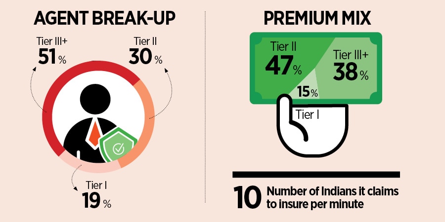 A further deep-dive into the data helps in decoding Agrawal’s “method". The founder had placed 51 percent of agents in Tier III, and another 30 percent in tier II cities. In terms of premium collected, the respective percent stands at 47 percent and 38 percent (see above box).