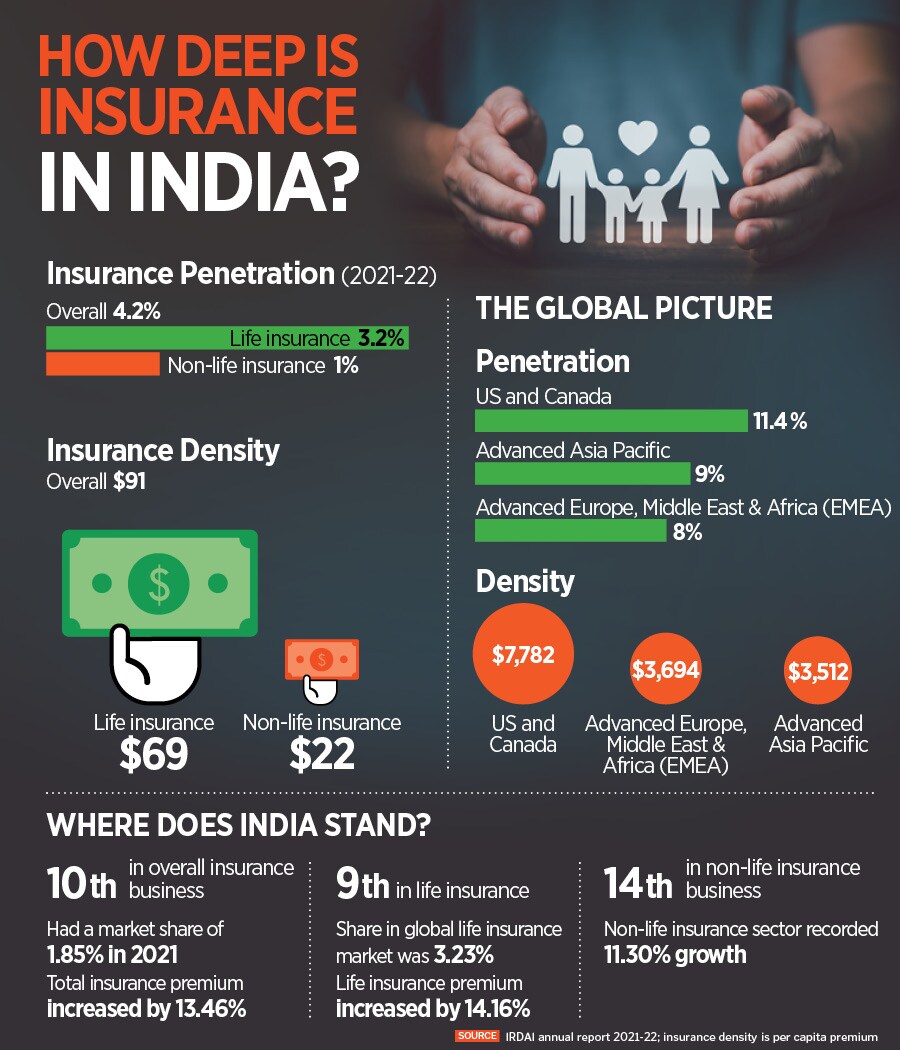 The insurance opportunity in India is massive. The overall insurance penetration in India stands at 4.2 percent. The equivalent number for life and non-life stand at 3.2 percent and 1 percent, respectively. When one looks at the global numbers, the big Indian opportunity becomes crystal clear. While the US and Canada have a penetration of 11.4 percent, the insurance density (which means per capita premium) is at $7,782. The equivalent number for India is just $91.