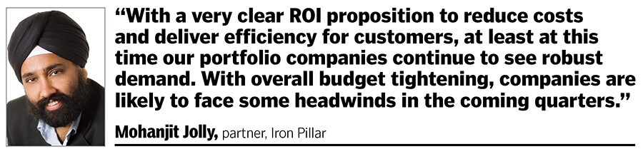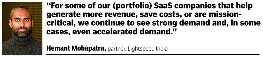 “All of our SaaS companies have a clear return-on-investment proposition for enterprise customers," says Mohanjit Jolly, a partner at venture capital firm Iron Pillar. “They reduce costs and deliver operational efficiency." As a result, “at least at this time, they continue to see robust customer demand", with companies clocking year over year growth in annual recurring revenue at 100 percent to 1,000 percent, he says.