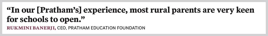 Based on the experiences of the past year, there are three clear scenarios we must be prepared for, says Rukmini Banerji, CEO, Pratham Education Foundation. First, a complete lockdown where no movement is possible second, partial restrictions on movement, where teachers may be in school but not children, and third, when there are no restrictions on movement, and both teachers and parents can be in school. While schools did not know how to cope with the unfolding situation when they suddenly shut down in March 2020, now, 1.5 years down the line, each state must have a plan worked out for each of the three scenarios, she explains.