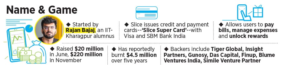 For three years, 2016 to 2018, Bajaj again forgot the second basic of dribbling. Don’t bounce the ball too high. In 2019, he switched to cards. Slice started issuing credit and payment cards—‘Slice Super Card’—with Visa and SBM Bank India. The focus was on millennials and Gen Z, and Slice allowed them to pay bills, manage expenses and unlock rewards.