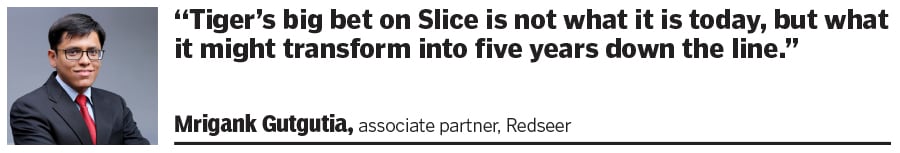 The second component of any investment thesis, Gutgutia underlines, is the way the company getting funding has grown. “Slice is bridging that credit divide, has buy now pay later embedded in it and has found the product-market fit," he says, adding that the fintech startup is bringing millions of users who have zero credit score into the mainstream. Tiger, he reckons, is not betting on what Slice is today. “They are betting on what Slice could be in five years," he says, alluding to a host of cross-selling and many financial services and products that Slice might get into in the future.