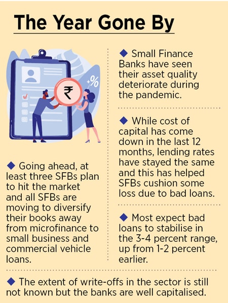 Most SFBs have recognised stress upfront and have accelerated provisioning. Sanjay Agarwal of AU Small Finance Bank says, “We look at this as a one-time event and will provision for it (through write-offs or increased capital) and then move on."