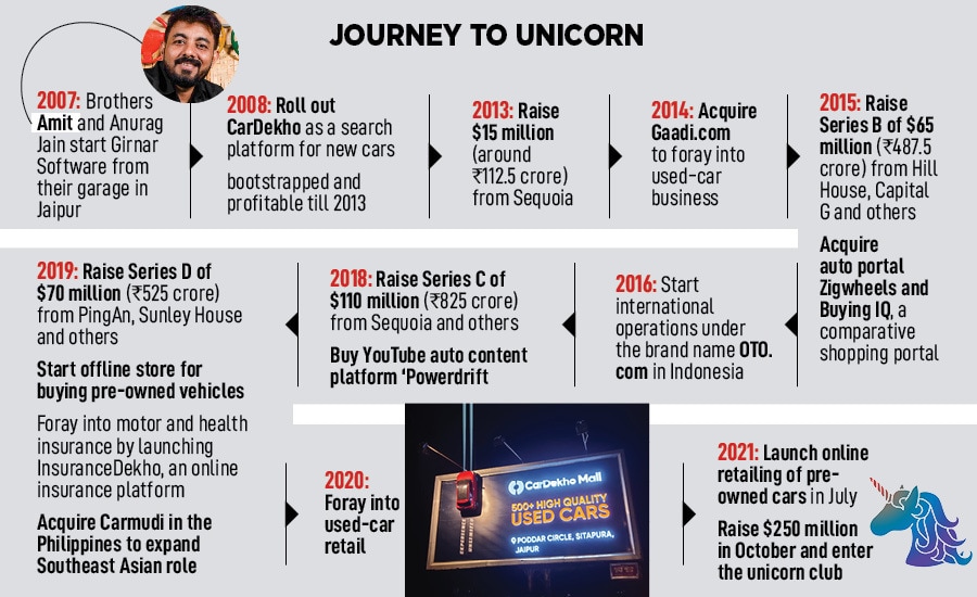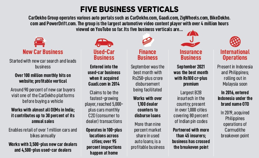 Eight years later, Jain reckons the timing is right to step on the gas. The reasons are many. First, the company has grown at a fast clip. The operating revenue has jumped from Rs82.5 crore in FY16 to a staggering Rs884.4 crore in FY21. Second, the new car and finance business are profitable, the insurance vertical is at a breakeven point, and the international operations in Indonesia and Philippines have taken off. Third, the company is planning to get listed in 18 months. Jain wants to keep his foot on the accelerator. “We have found the right place, it’s an exciting time and we have to play it right," he says.