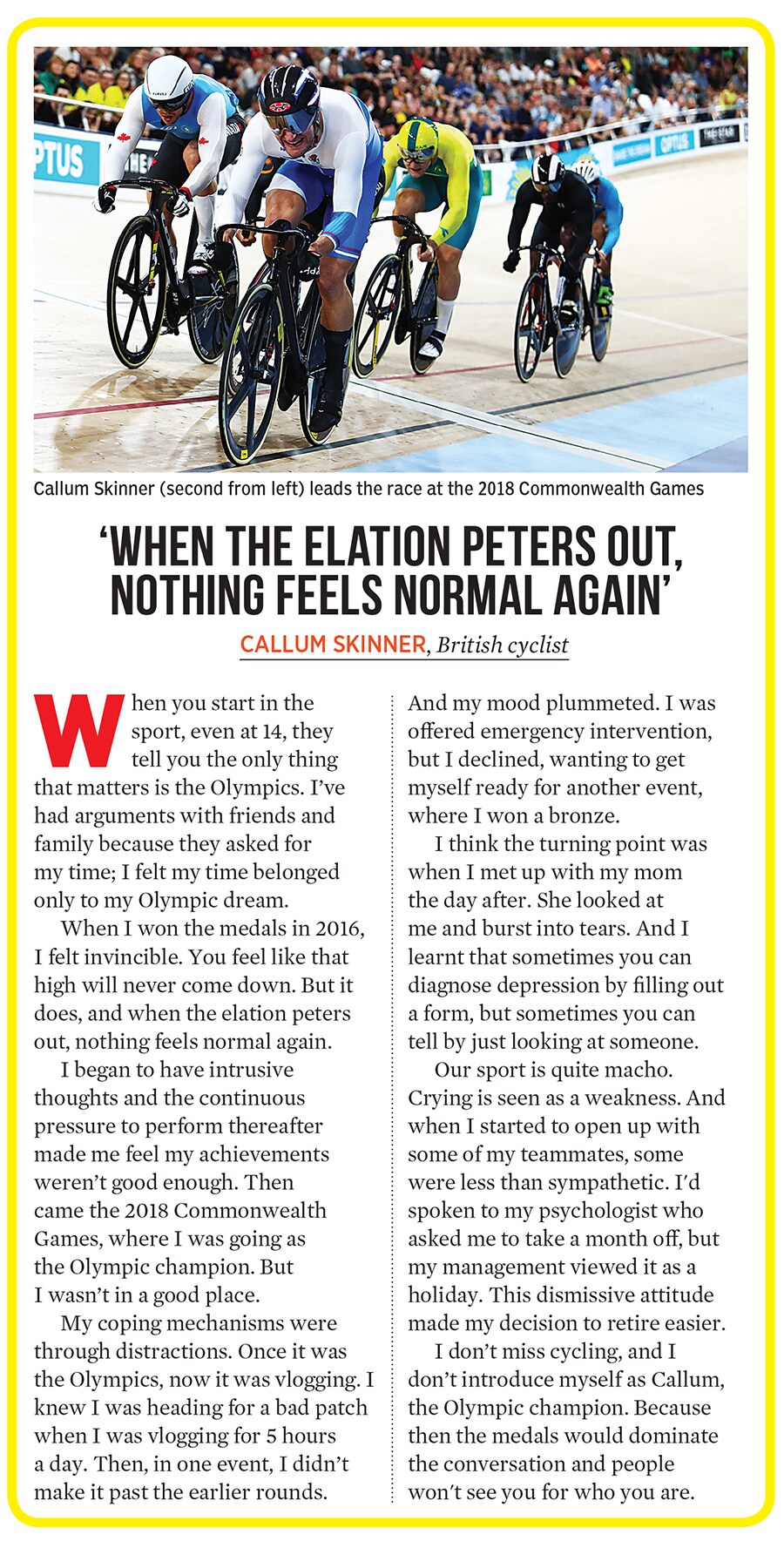 But if you are a part of the system, there’s no escaping the single-minded winner-takes-all focus. Callum Skinner, a now-retired British cyclist and a double Olympic medallist in 2016, feels depression had been a constant companion for him, but was covered up in an “all-encompassing distraction"—the Olympics. “Winning there was a life-and-death matter," says Skinner, now the head of Global Athlete, an international campaign that is pushing for better rights and conditions for athletes. “One of my best friends asked me to be the best man at his wedding and I turned it down. The closer you get to the goal, you exclude everything else in life."