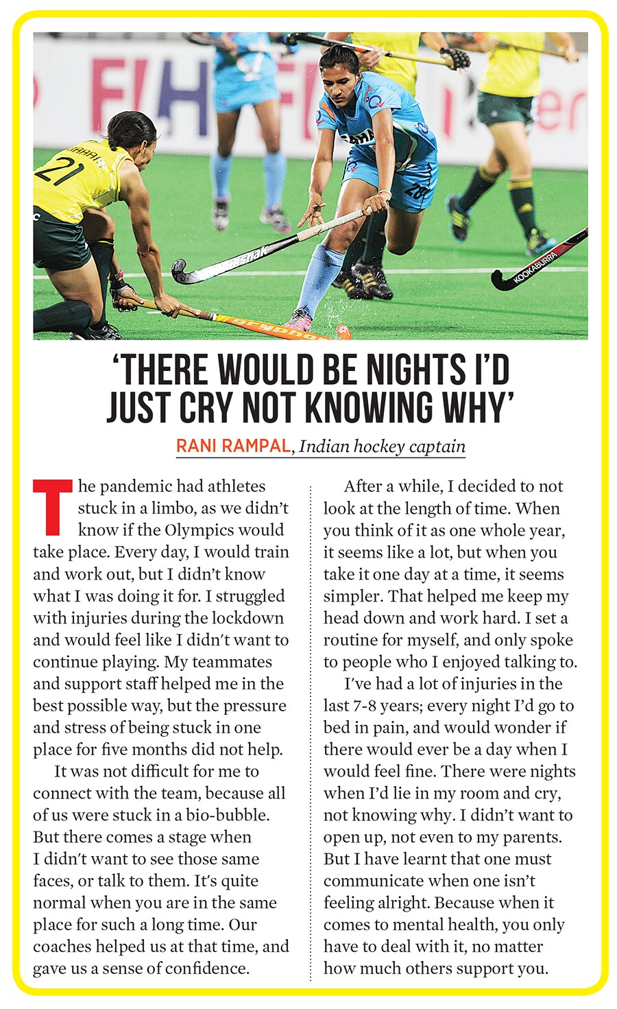 In a society that’s driven by ambition and high performance, a sportsperson is often forced to derive identity and self-esteem from scorecards. And those who are less-than-perfect are quickly cast aside. “Samjhana sabko aata hai, par samajhna bahut kam logo ko [everyone knows how to explain, but few understand it themselves]," says Rani Rampal, the skipper of the Indian women’s hockey team headed for the Olympics. “Everyone wants a medal. When the pressure of expectations comes through, it makes you overthink."