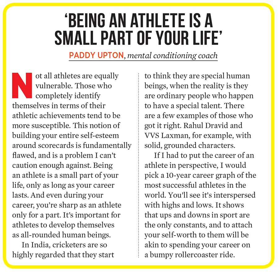 Besides, most psychologists advocate a Plan B that acts as a safety net for two groups: Those at the starting line, should their sporting careers be grounded, and those in the last mile, to help them segue into an alternative, engaging vocation. It’s one of the key interventions Gorhe took up with young Mumbai players, and something that cyclist Skinner bats for as well.