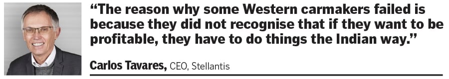 “The reason why some of the Western carmakers failed is because they did not recognise that if they want to be profitable, they have to do things the Indian way, which is to be smart, be frugal and understand what the customer really wants and does not want," Tavares says. “And that is the reason why we need to engineer those cars in India because the product might have features and equipment which may not be valued by the Indian consumers."