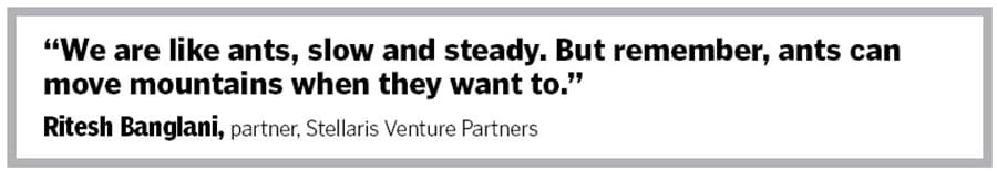 Goyal’s partner jumps in with his take on investing. “It’s perhaps the best profession in the world because we get paid to be wrong 80 percent of the time," Ritesh Banglani says in a lighter vein. Stellaris, he contends, doesn’t have a ‘spray and pray’ approach. “We don"t write cheques where we say ‘hey, I don’t fully believe in this company but let me write a small cheque and see what happens," says the investor who invested in companies like Taxiforsure, Lifecell, and Trulymadly at Helion. “We don’t write cheques where we have a small ownership," he says, adding that the company and the founder have never embraced the cowboy approach of betting on as many companies as possible.