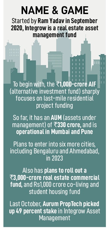 The move seems to be paying off. Integrow has managed to build AUM (assets under management) of Rs330 crore, is operational across Mumbai and Pune, and now plans to enter six more cities, including Bengaluru and Ahmedabad. The company also has plans to roll out a Rs3,000-crore real estate commercial fund, and Rs1,000 crore co-living and student housing fund in 2023. What has plagued the real estate sector, Yadav explains, is not lack of funds, but a glaring absence of monitoring, zero use of technology and an opaque way of functioning. “Integrow is laying down new rules for the real estate market," says the founder and CEO, who sold his 49 percent stake in Integrow to Aurum PropTech last October. “The idea was to build together a proptech company, and our visions matched," he says, explaining his move to get Aurum PropTech on board.