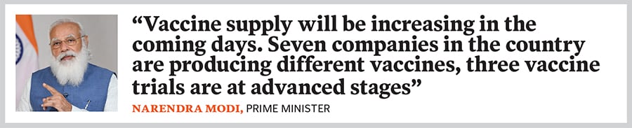 Says KR Antony, a public health consultant, “We need 47 lakh population coverage per day as against coverage of 20 lakh per day because the vaccine production is only that much. There’s a huge deficit, so we have to be pragmatic." According to him, the government’s changing vaccine strategies, including opening up vaccination to all adults when even the priority groups had not received their second dose, and then transferring responsibility to states when there were no vaccines available for purchase was like “declaring a war without armoury".